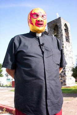 Don Sergio Guitierrez, detto “Fray Tormenta”(Frate Tempesta), per la gioia dei bambini addirittura serviva la messa in maschera!