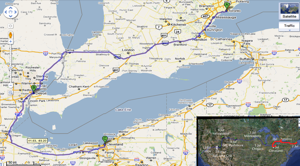 L’idea era di passare da Detroit per poi riscendere a Cleveland. La giornata era bella e il sole discretamente splendente.