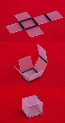 Questo materiale plastico quando viene colpito da luce infrarossa “rattrapisce” e se modellato a dovere si chiude in se stesso per dar vita ad un oggetto tridimensionale. Lo scopo è cambiare il mondo del packaging: ti stampi il modello e con la sole luce si crea da sola la scatola vuota!